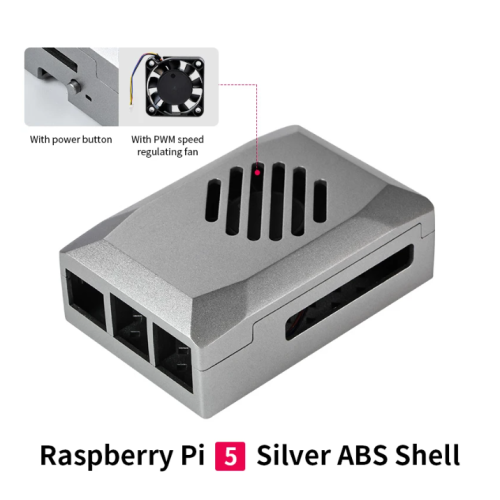 RASPBERRY PI 5 SILVER SHADOW CASE WITH PWM COOLING FAN